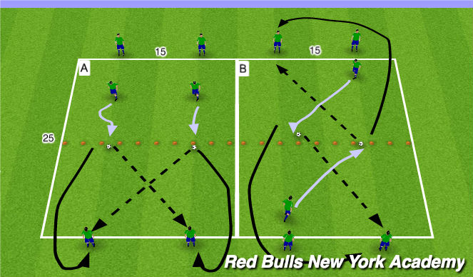 B - dipicts activity that could be used to ask players to play a reverse pass